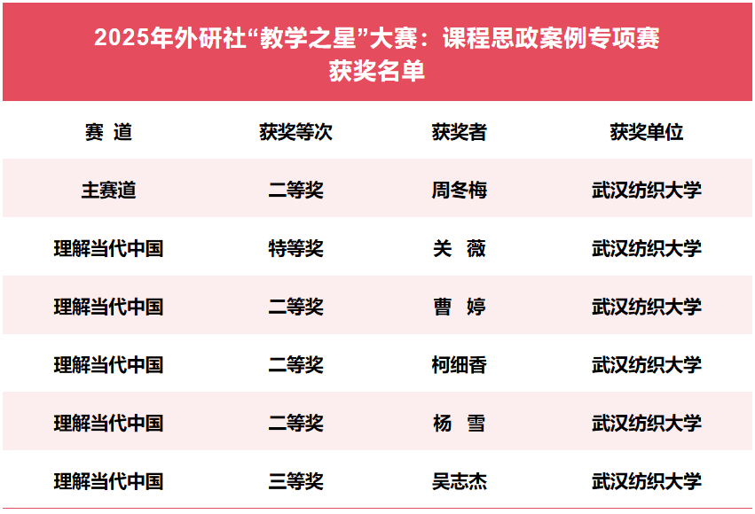 此次竞赛中,我院教师积极参与、精心备赛,最终斩获特等奖 1 项、二等奖 4 项、三等奖 1 项。下一步,我院将以此次获奖为契机,推广优秀教学案例经验,持续深化外语课程思政改革,为培养高素质国际化人才筑牢教学根基。