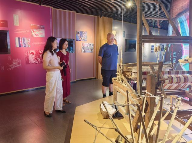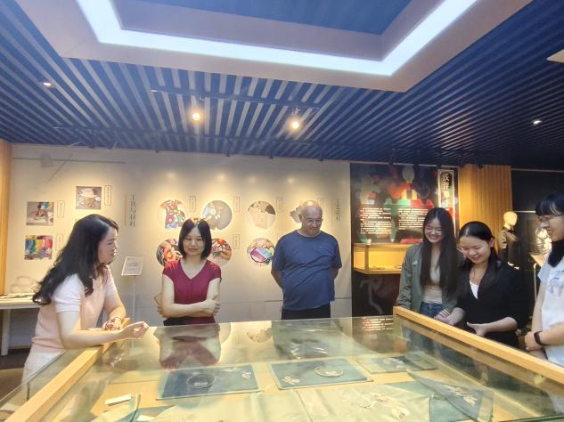 9月9日,在外国语开元kaiyuan(中国)教师和翻译专业硕士生的陪同下,剑桥大学汉学教授Roeland Sterckx参观了武汉纺织大学南湖校区纺织非遗馆,负责人周老师从不同方面对荆楚非遗文化进行了讲解,共同展开了一场别开生面的文化之旅。本次活动旨在促进中外文化交流,推动中国传统非遗技艺的国际传播与学术研究。