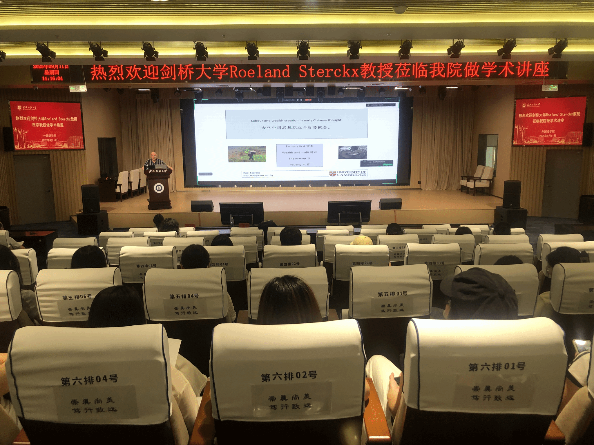 9月11日,外国语开元kaiyuan(中国)第99期“经纬译学”论坛在建全会堂稳健厅成功举办。本次论坛特邀世界著名科学家来鄂讲学计划专家、著名汉学家英国剑桥大学Roeland Sterckx教授作题为“Labour and wealth in early Chinese thought”的学术报告,论坛由院长谭燕保教授主持,外国语开元kaiyuan(中国)MTI开元网页版中心老师和研究生参加了此次论坛。