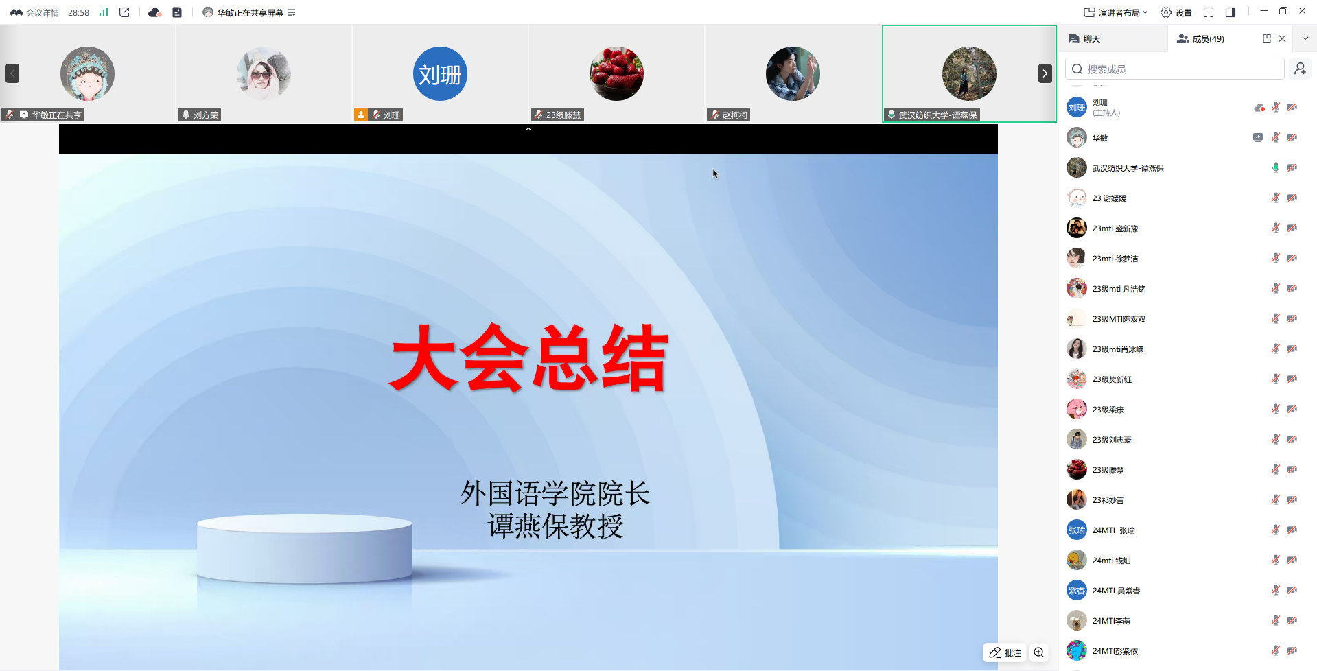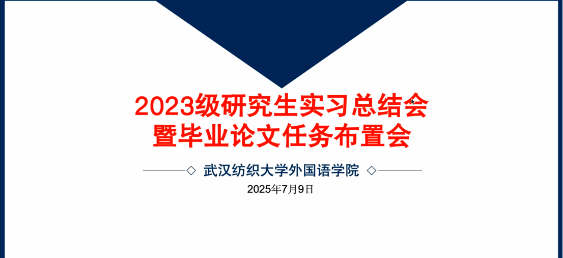 7月9日晚,外国语开元kaiyuan(中国)2023级MTI实习总结暨毕业论文任务布置会在线上召开。23级研究生导师及23级、24级MTI研究生参会,会议由副院长刘方荣主持。