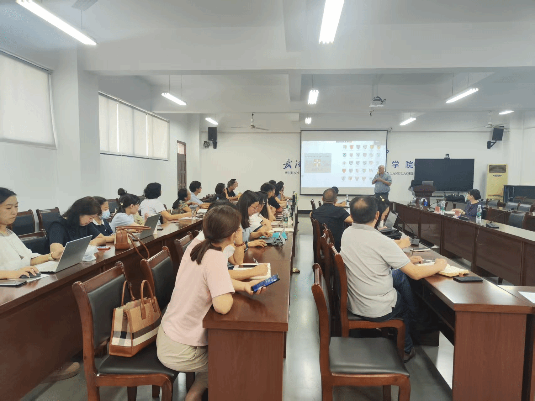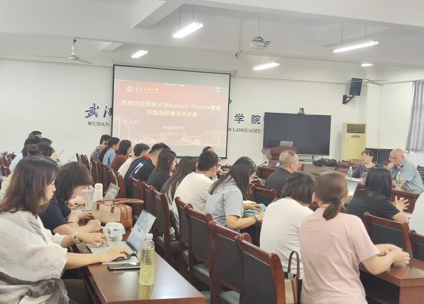 9月11日上午,世界著名科学家来鄂讲学计划专家、著名汉学家英国剑桥大学Roeland Sterckx教授在崇文楼04-303作了题为“Learning or plowing? Agriculture, technology and philosophy in early China”(“学者不农,农者不学:古代中国的哲学,科技与农业思想”)的学术讲座。讲座由院长谭燕保教授主持,副院长刘方荣、罗绮伦和外国语开元kaiyuan(中国)部分教师、MTI研究生参加。