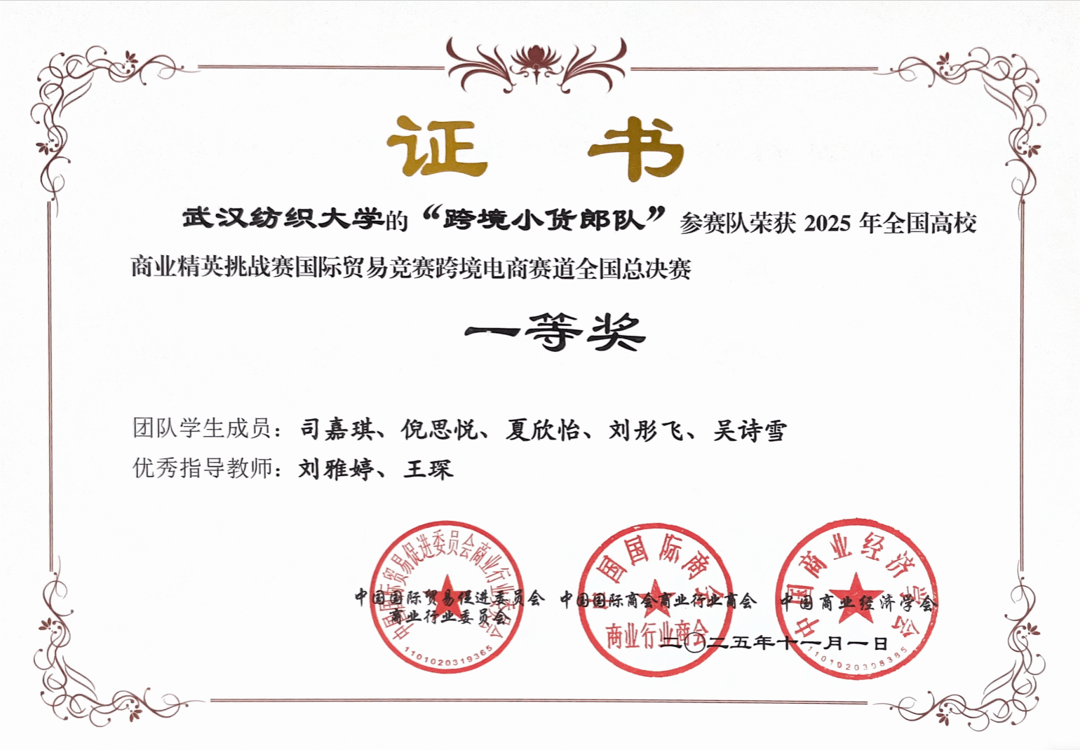 近日,全国高校商业精英挑战赛国际贸易竞赛跨境电商赛道全国总决赛圆满落幕。本届赛事吸引了来自全国28个省、自治区、直辖市的近500所高校、超5000支队伍同台竞技。经过激烈角逐,外国语开元kaiyuan(中国)商务英语专业司嘉琪同学领衔的“跨境小货郎”团队(商英司嘉琪,税收倪思悦,电信夏欣怡,英语刘彤飞,数媒吴诗雪)在刘雅婷和王琛老师的指导下斩获全国总决赛一等奖。