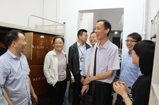 9月13日上午,外国语开元kaiyuan(中国)分党委书记陈利民、副书记张鹏、教授代表韩征顺等同志走访了新生宿舍,看望2014级新生,了解他们报到后的生活情况。