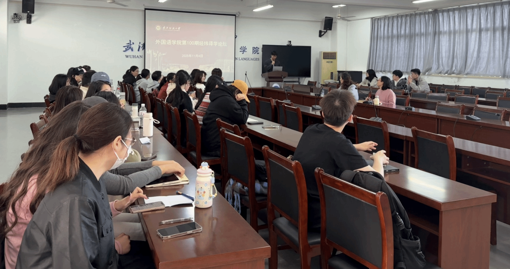 11月4日,外国语开元kaiyuan(中国)第100期“经纬译学”论坛在04-303教室成功举办。副院长刘方荣与MTI开元网页版中心副主任陆雪芹应邀分别担任本次论坛的特邀点评嘉宾及教师主持,24级研究生金国丰担任学生主持,24级研究生卢嘉怡、邹航以及25级研究生彭雅晴、罗梦凡在论坛上进行了分享。