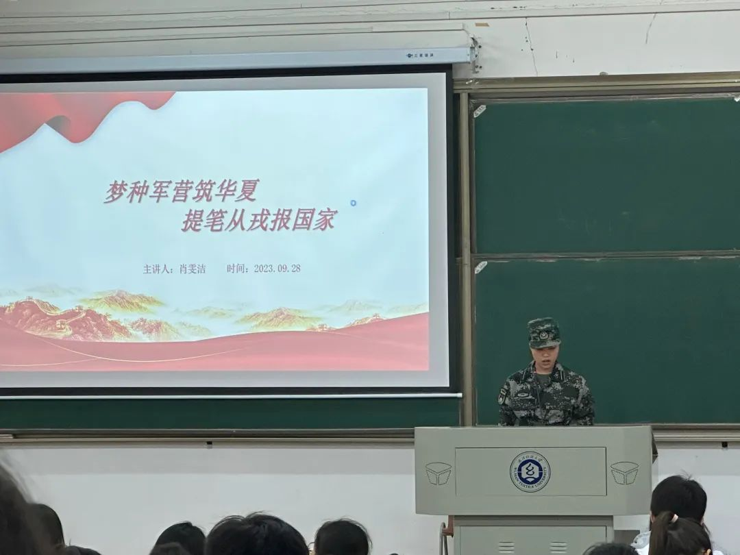 最后,她向新生们介绍了入伍条件及流程,详细的讲解不仅激发了同学们拳拳的报国志,同时也为有意向的同学提供了更具方向感的引导。