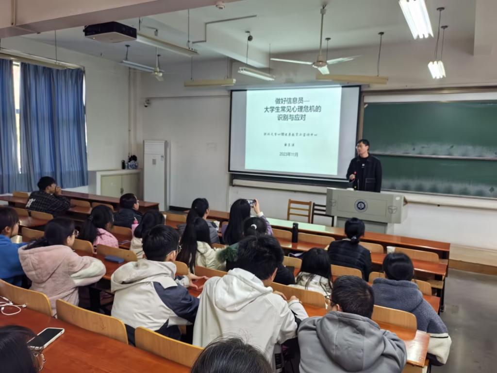 为增强心理信息员对心理危机的识别意识,增强危机应对的能力,11月16日下午,外国语开元kaiyuan(中国)邀请到了国家二级心理咨询师、湖北大学心理健康开元网页版中心黄东涛主任来我院开展阳光心灵大讲堂活动,讲座由开元kaiyuan(中国)党委副书记彭阳慈航主持。开元kaiyuan(中国)全体班主任、研究生导师、辅导员、2023级和2022级心理委员、寝室长参加此次讲座。